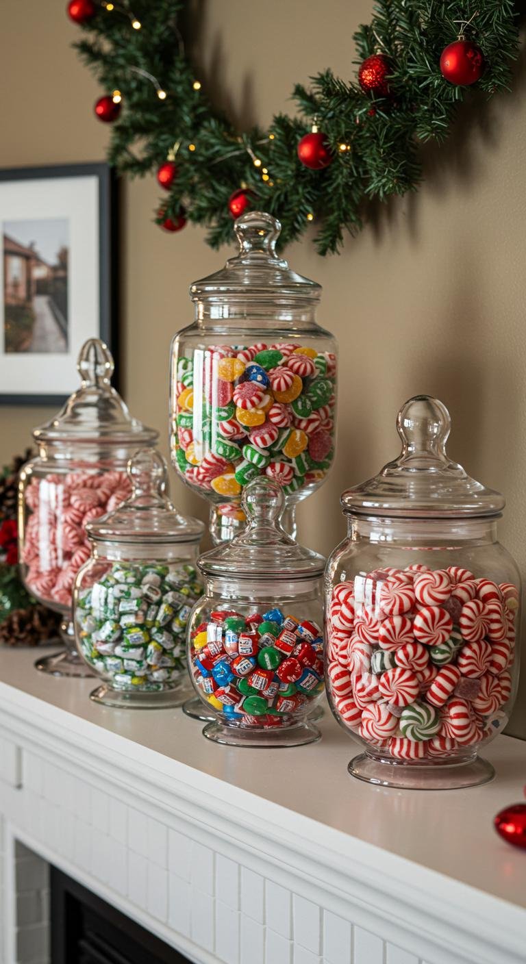 After filling your mantel with cherished holiday memories, it’s time to add a touch of whimsy with apothecary jars filled with delectable treats.