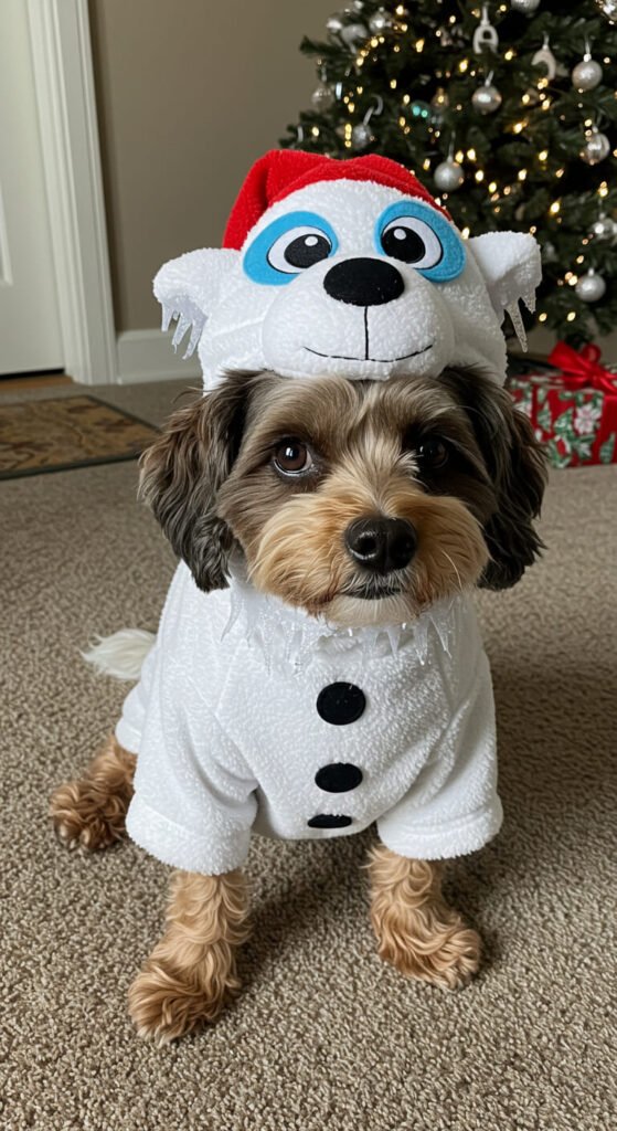 Frosty the Snow Dog is the perfect festive outfit for your furry friend, combining holiday cheer with playful flair.