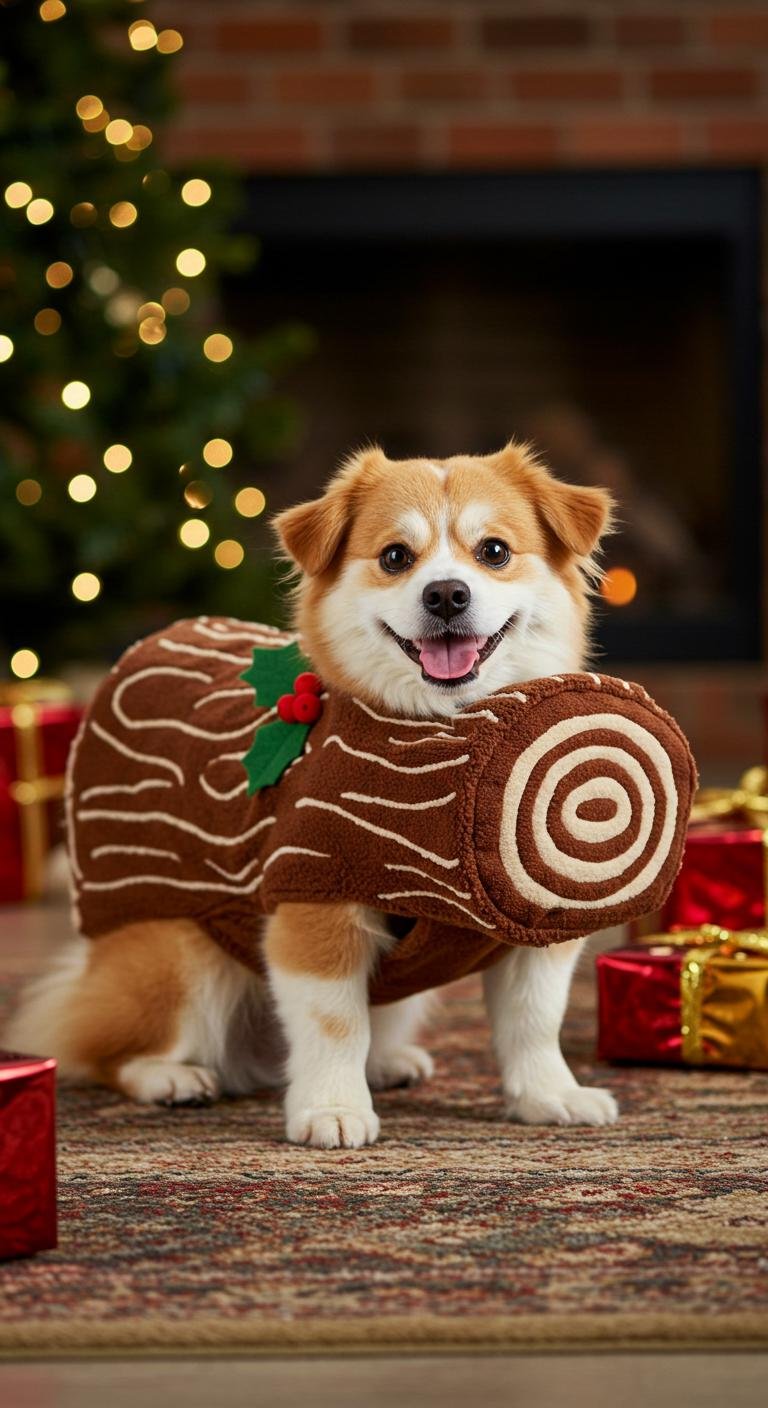 Switching gears from the shining stars to cozy warmth, the Yule Log Pet Costume brings a festive twist to your holiday celebrations!