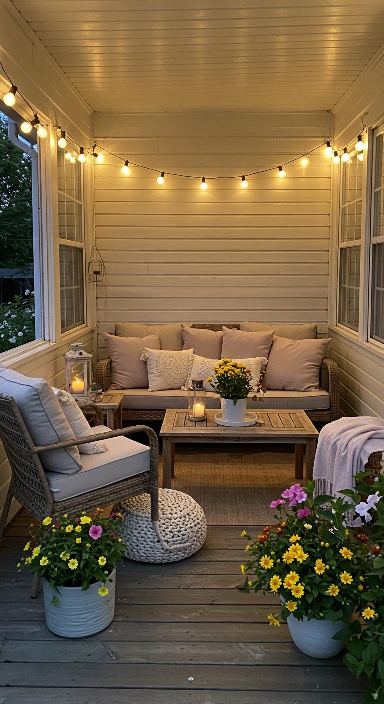 Is there anything more magical than twinkling fairy lights at night? Stringing these beauties around your door, railings, or nestled in nearby trees turns your porch into a cozy wonderland. Warm white lights keep things classic, while colored strands add a playful vibe. Wrapping them around porch pillars takes the wow factor up a notch. Love a neat setup? Battery-operated lights are lifesavers—no tangled extension cords needed. For a fun twist, look for those shaped like stars or snowflakes and watch your evenings sparkle effortlessly.