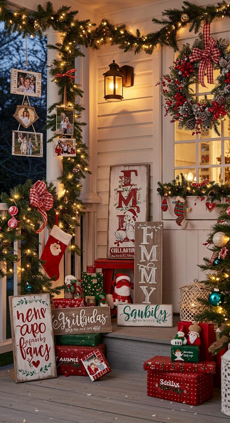 Nothing says “welcome” like personal touches. Think custom signs with your family name or favorite holiday quotes, and sprinkle in framed family photos for a genuine, heartwarming vibe. These little nods to your story turn your porch from just festive to deeply inviting. You can find local artisans for cool customized pieces or dive into some DIY projects—either way, it adds that unique spark that makes your porch feel truly special.