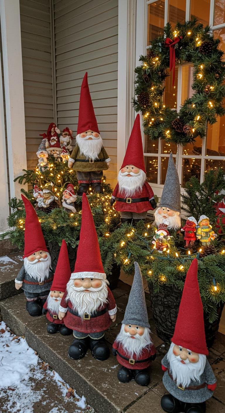 Lighten the mood with whimsical gnomes or holiday figurines scattered around flower pots or tucked near your entrance. Creating little scenes with these playful characters makes the whole porch feel alive and joyful. You can find wallet-friendly options at most stores or have a blast crafting your own with simple supplies. Honestly, everyone from kids to adults gets a kick out of these quirky touches—they’re a great way to balance out serious décor and keep things lively.