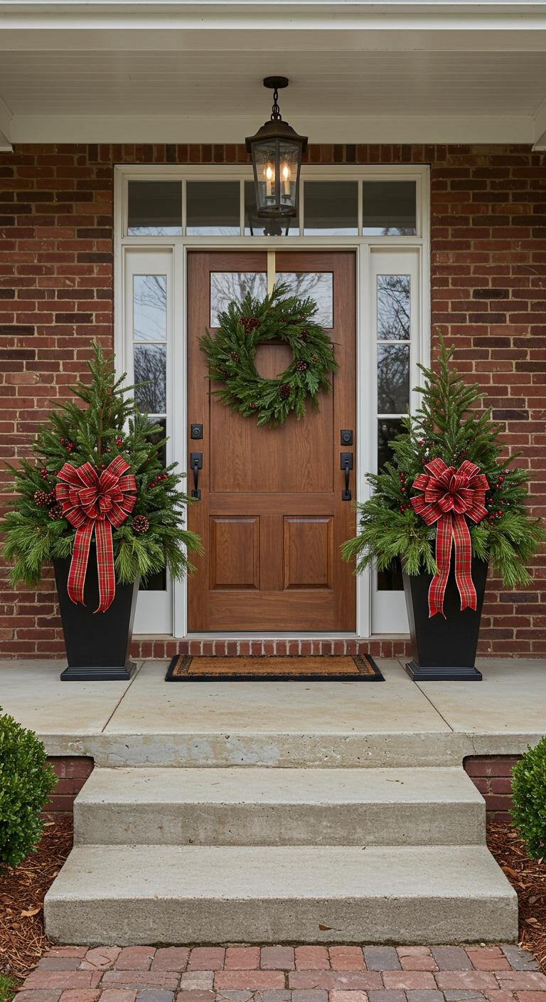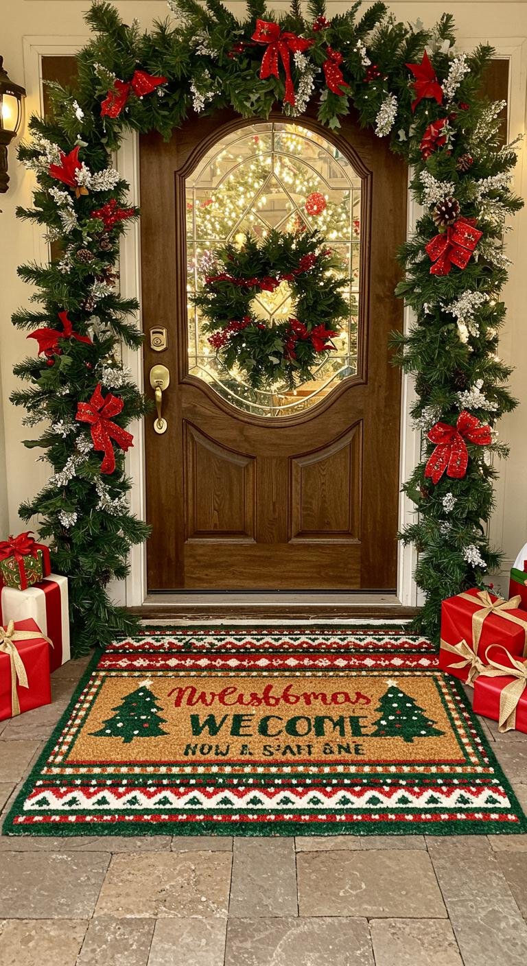 The doormat might seem small, but it totally sets the holiday mood before anyone steps a foot inside. Whether you pick a funny, heartfelt, or trendy design, it’s an easy way to showcase your personality. You can find plenty at local shops or even get creative and craft your own with stencils and paint on a plain mat. I love mats with playful patterns or classic Christmas quotes — those little details make your porch feel extra warm and thoughtful.