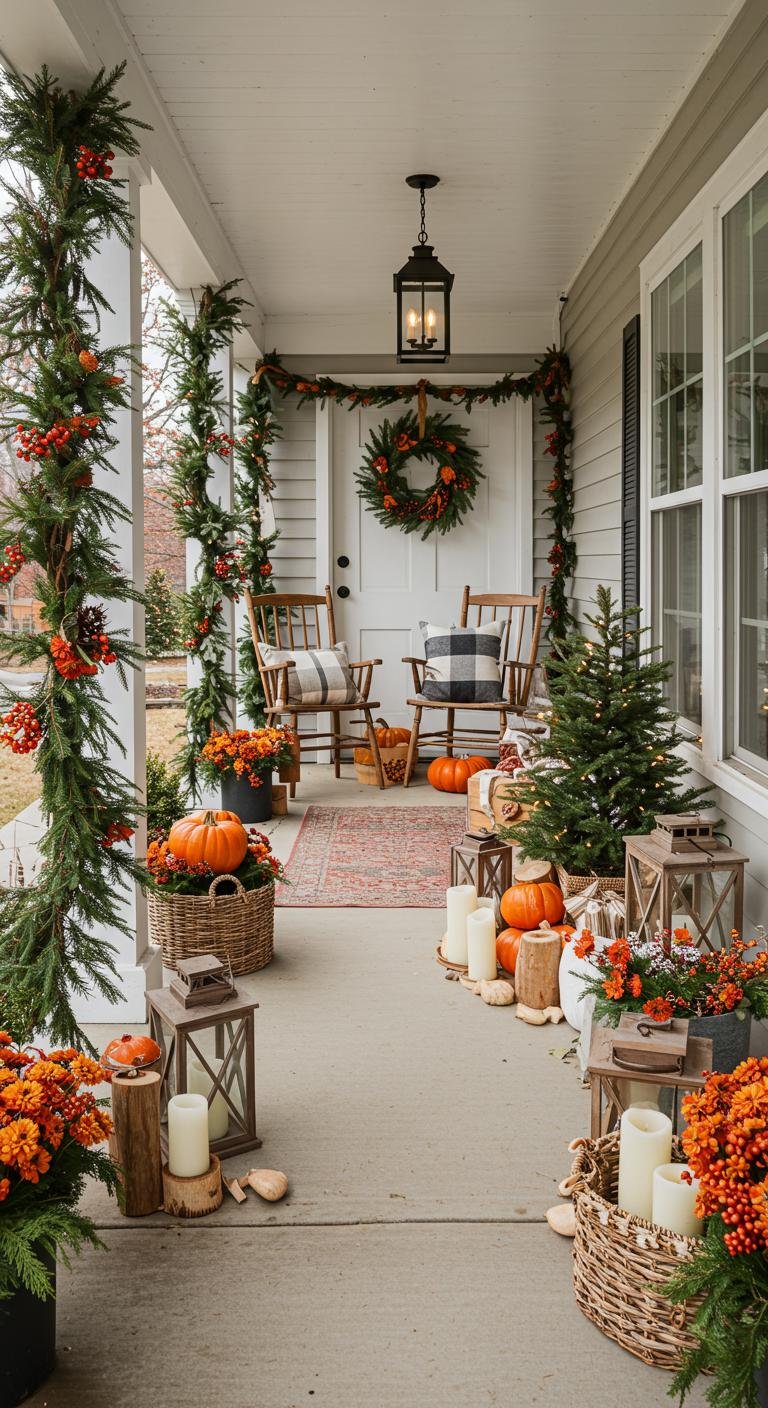 One of my favorite hacks is using decor that works across seasons. Start with pumpkins and fall touches, then swap in holiday-themed items without overhauling your whole porch. Versatile pieces like lanterns or natural wreaths help your porch flow seamlessly from one season to the next. It’s such a smart, sustainable way to decorate that also cuts down on holiday prep stress.