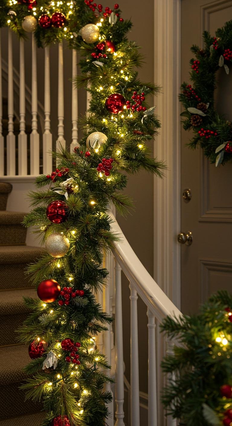 Garlands draped over your porch railings are like the holiday equivalent of a warm hug. Whether you go fresh or faux, they’re surprisingly easy to personalize. Bright ornaments, sparkly lights, and big festive bows are my go-tos for dressing them up. Pro tip: zip ties keep garlands secure even when the weather gets wild. Feeling crafty? DIY one using yard greenery and twinkling lights — it’s a budget-friendly project that instantly amps up your porch’s cozy charm.