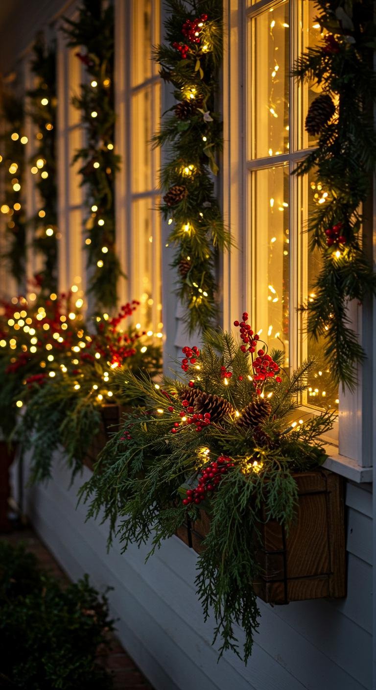 Window boxes are like the cherry on top for your holiday porch style. Fill them with hardy seasonal plants like pansies or ivy that can handle the cold. Mix in classic accents like red berries or pinecones to brighten things up. When evening rolls around, weaving fairy lights throughout your arrangement adds this soft glow that makes your whole house feel so warm and welcoming from the outside. Trust me, a beautiful window box can make all the difference!