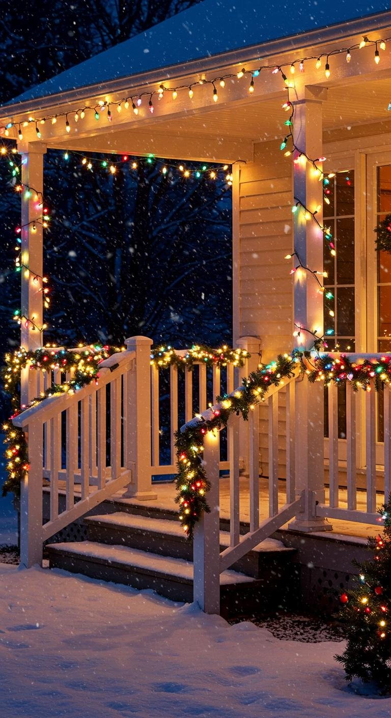 As you enhance your porch for the holidays, adding twinkling string lights can transform the space into a magical winter wonderland.