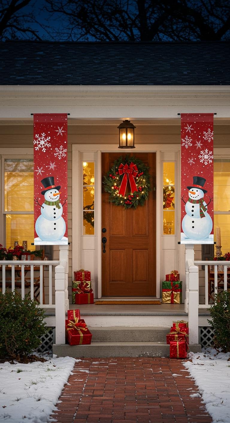 As you enhance your porch with cozy pillows and cushions, consider bringing in the charm of snowman decorations to complete the winter wonderland look.
