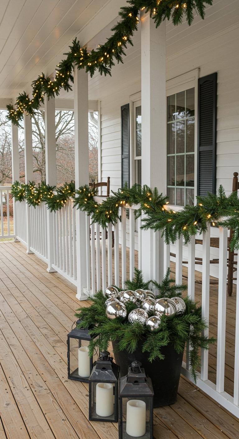 One simple yet striking way to elevate your porch’s winter appeal is by wrapping garlands around the railings.