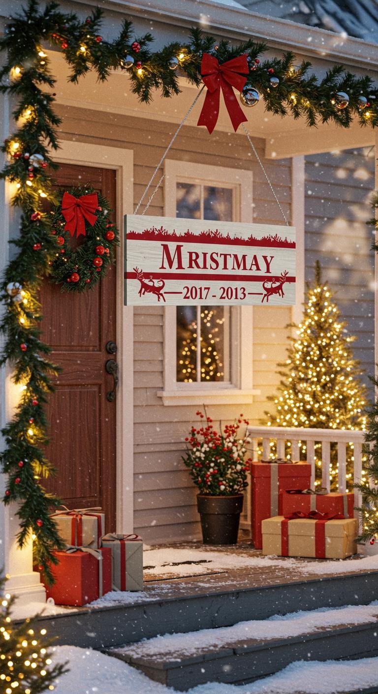 Creating a DIY Christmas porch sign adds a personal touch that showcases your holiday spirit to everyone who passes by. Gather DIY sign materials like wood, paint, and stencils. Experiment with creative lettering techniques to make your sign stand out. Whether you opt for cheerful greetings or whimsical designs, your unique creation will spread joy and invite all to celebrate the season!