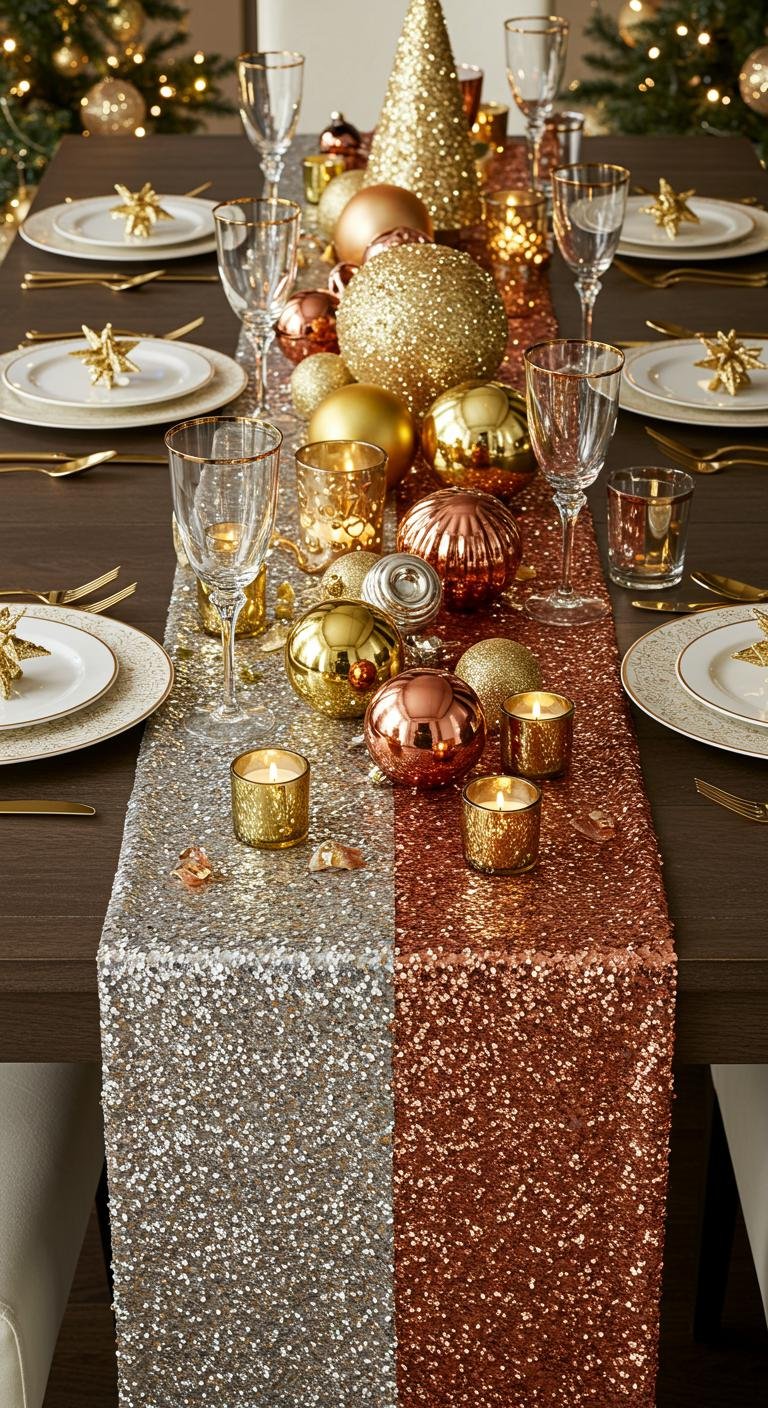 The sequin sparkle captures the twinkling lights of the season, infusing your table with festive glamour.