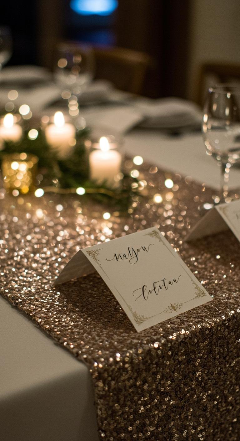 Consider using gold candle holders to create a warm, inviting glow, while shimmering table runners elevate the entire look.