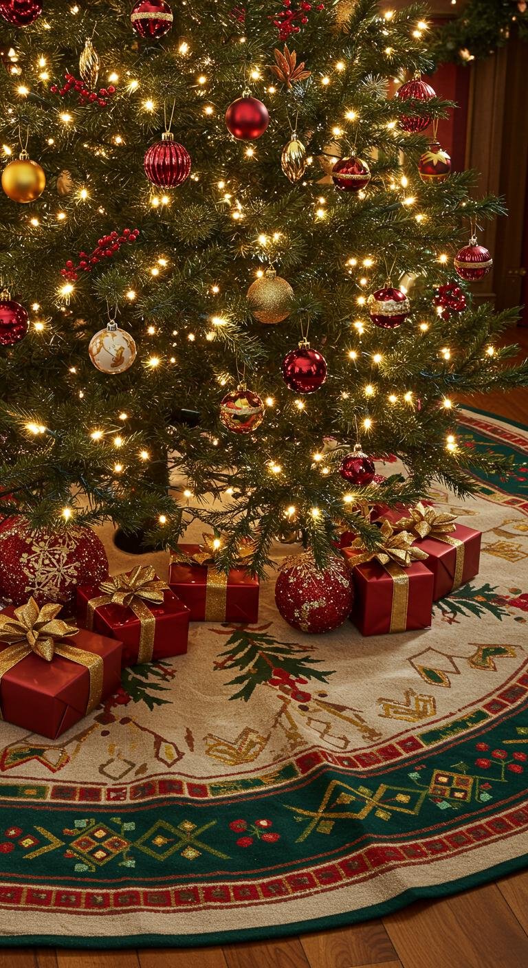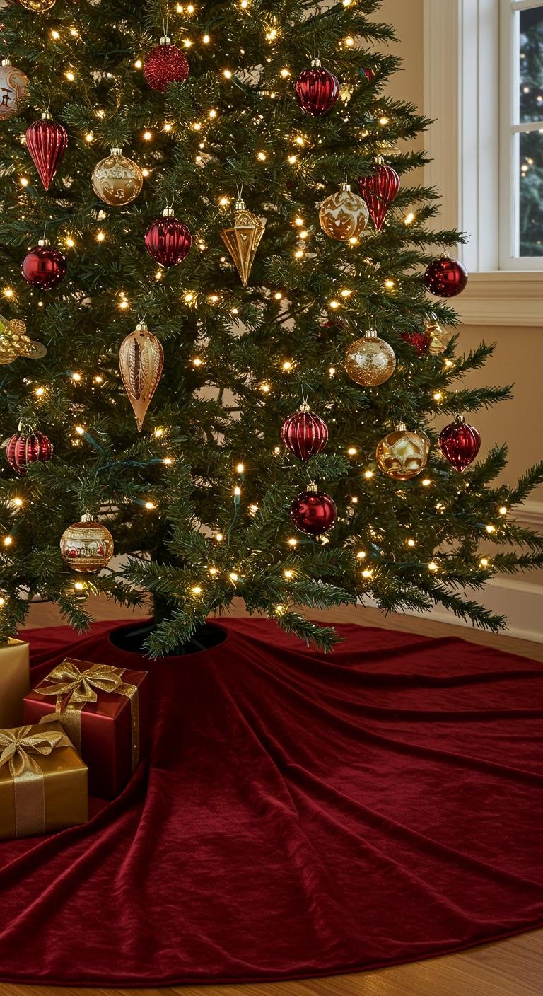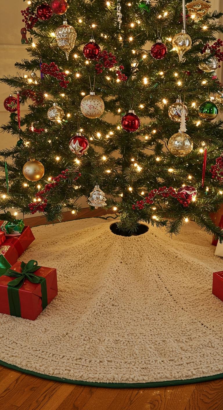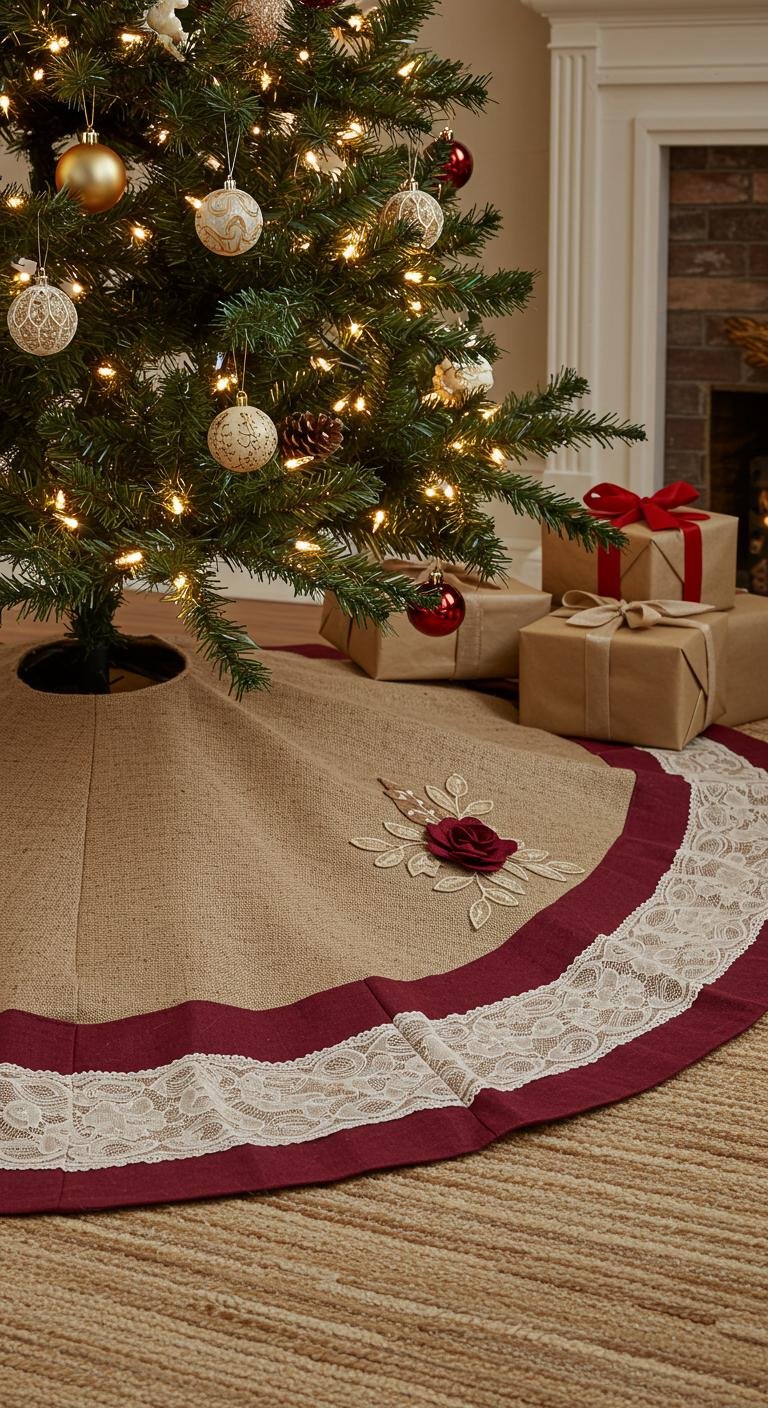 For those aiming for a cozy, rustic charm, a burlap and lace tree skirt can bring a unique warmth to your holiday décor.