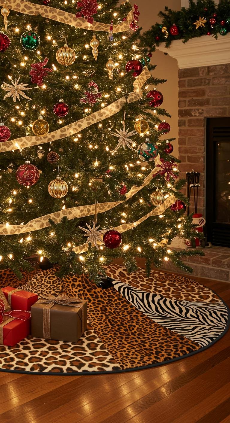 A playful animal print tree skirt can transform your holiday setup into a whimsical celebration of nature.