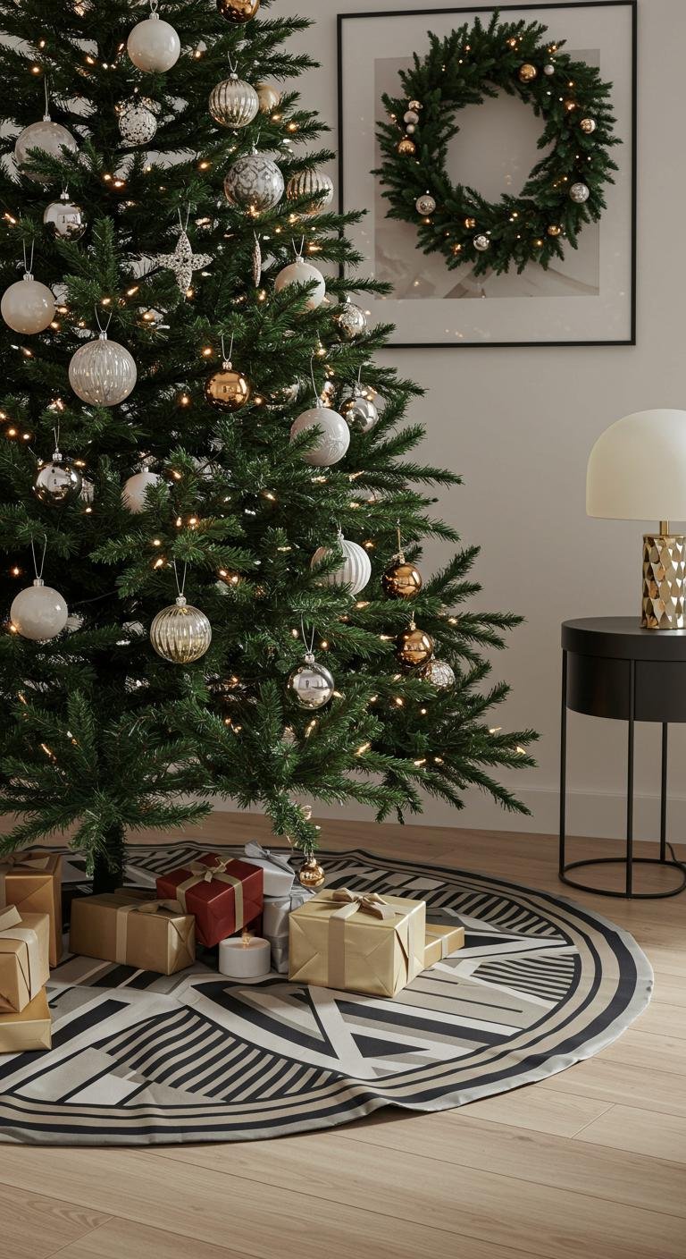 If you’re looking to add a contemporary twist to your holiday decor, a modern geometric print tree skirt could be the perfect choice.