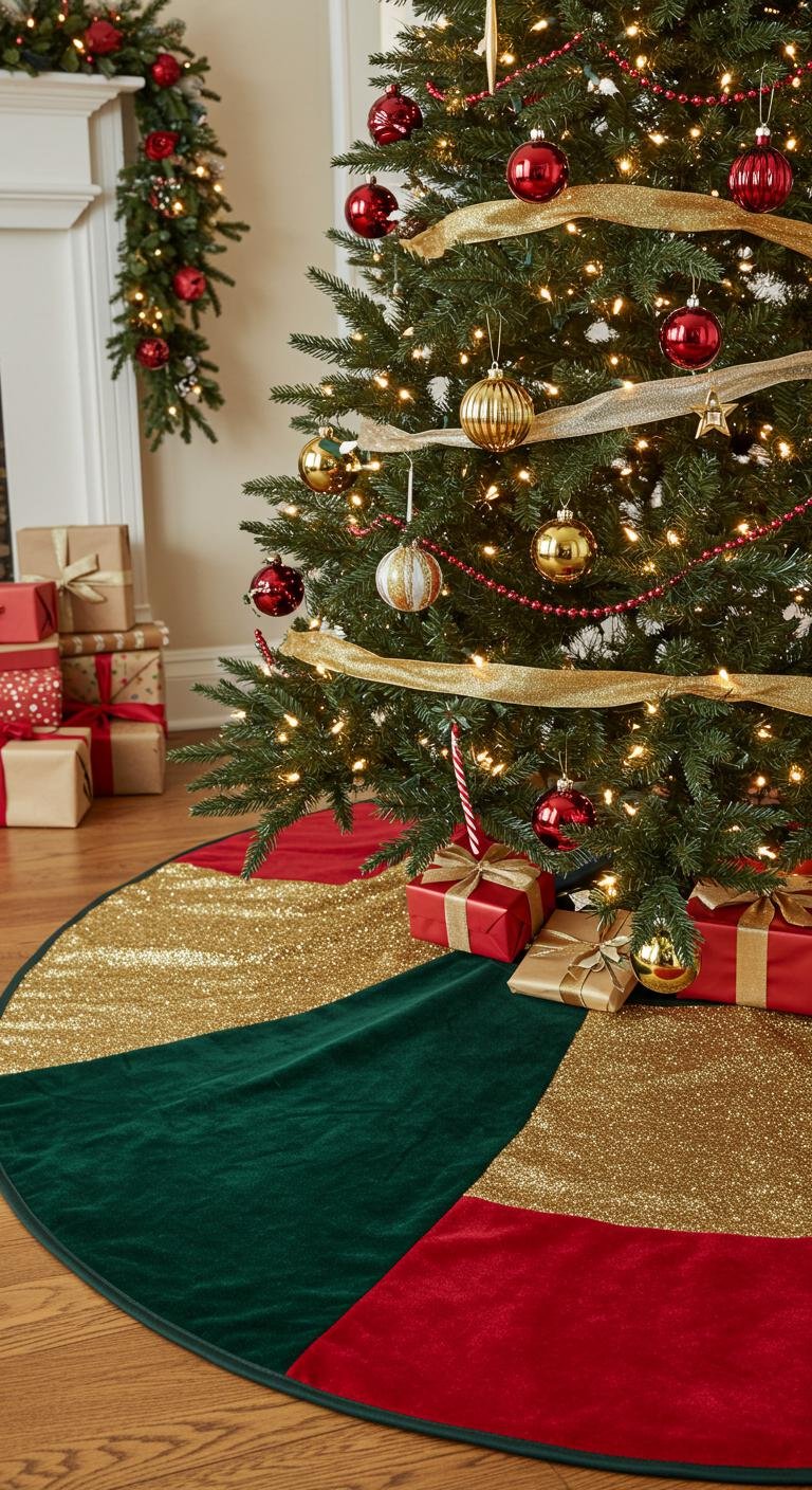 A handmade quilted tree skirt brings warmth and texture to your holiday decor, making it a perfect centerpiece for your Christmas tree.