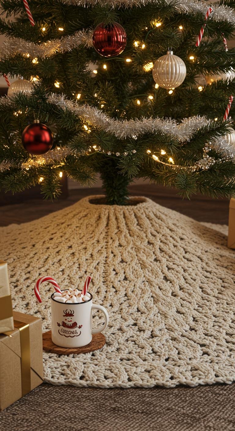 As the cold winter air wraps around your home, a cozy knit tree skirt brings warmth and charm to your holiday decor.