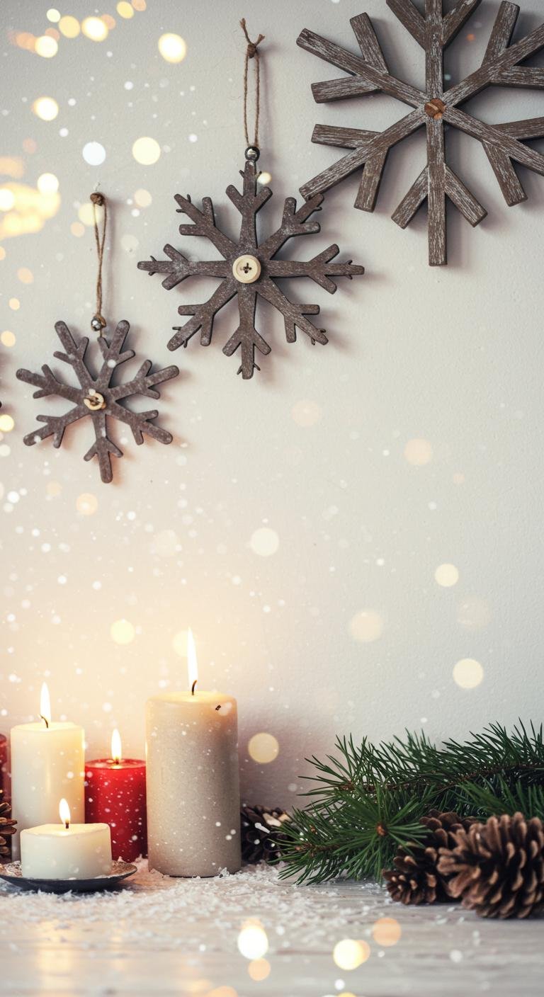 As winter blankets the world in glistening white, you’ll find that rustic wooden snowflakes bring a touch of warmth and charm to your holiday décor.