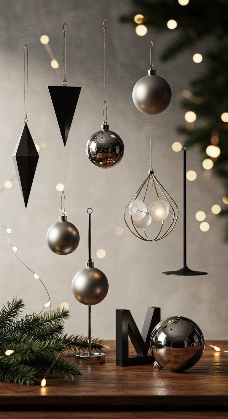After the rustic charm of a pinecone and berry swag, minimalist geometric ornaments offer a fresh and modern contrast to your holiday decor.