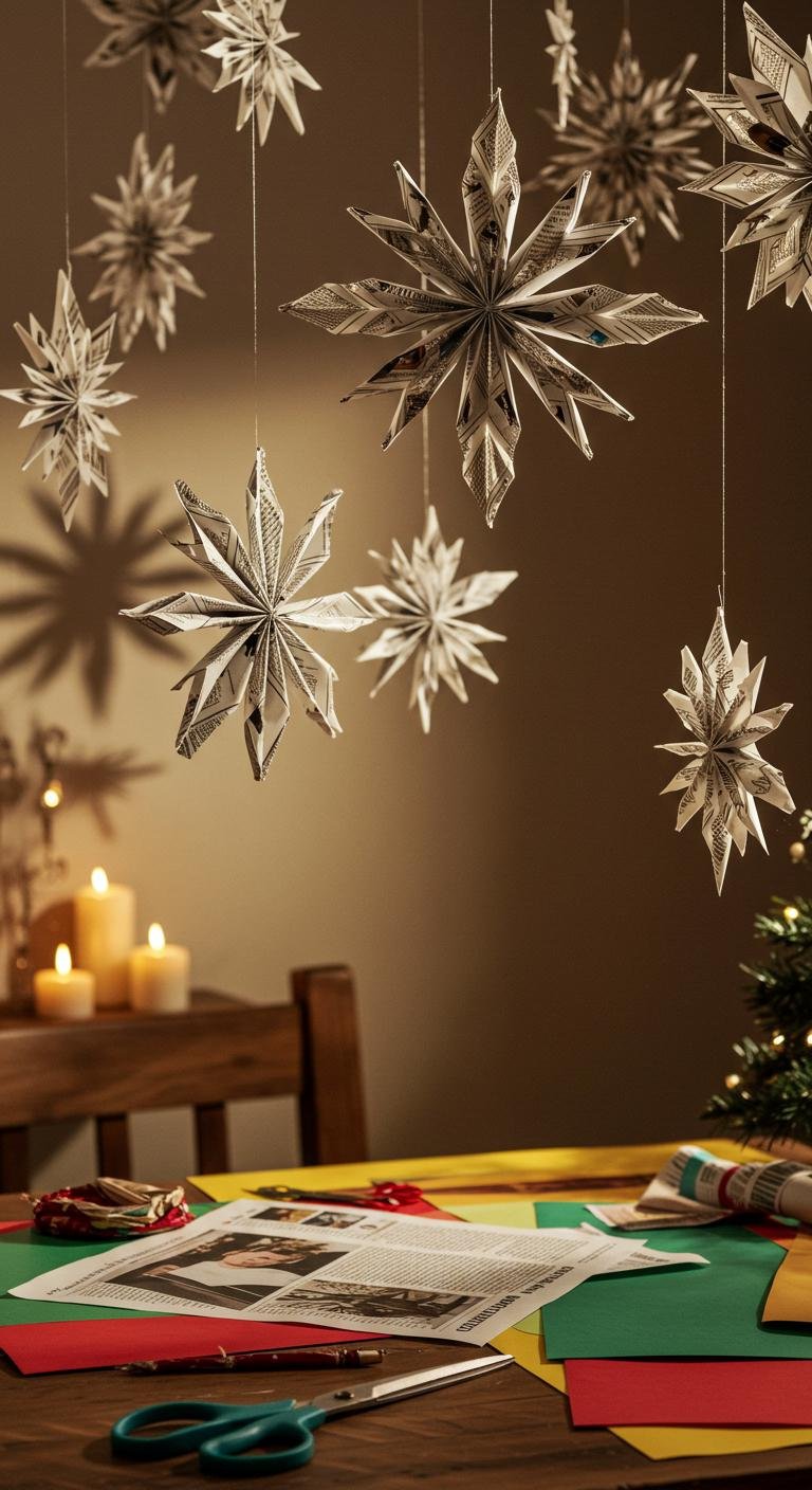 Grab old newspapers or magazines and transform them into unique snowflake patterns. As you snip and fold, you’ll release your creativity, making delicate, shimmering designs that dance from your walls.