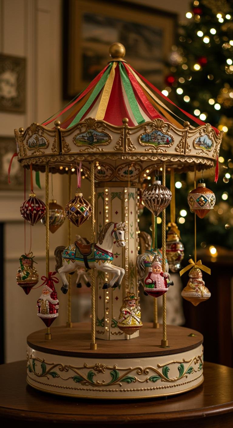 Embrace a vintage carousel design that twirls with nostalgia, effortlessly showcasing treasured ornaments.