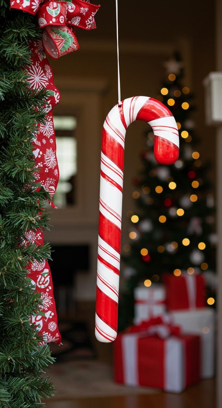 Add a festive touch to your entrance with a charming candy cane door hanger that instantly spreads holiday cheer.