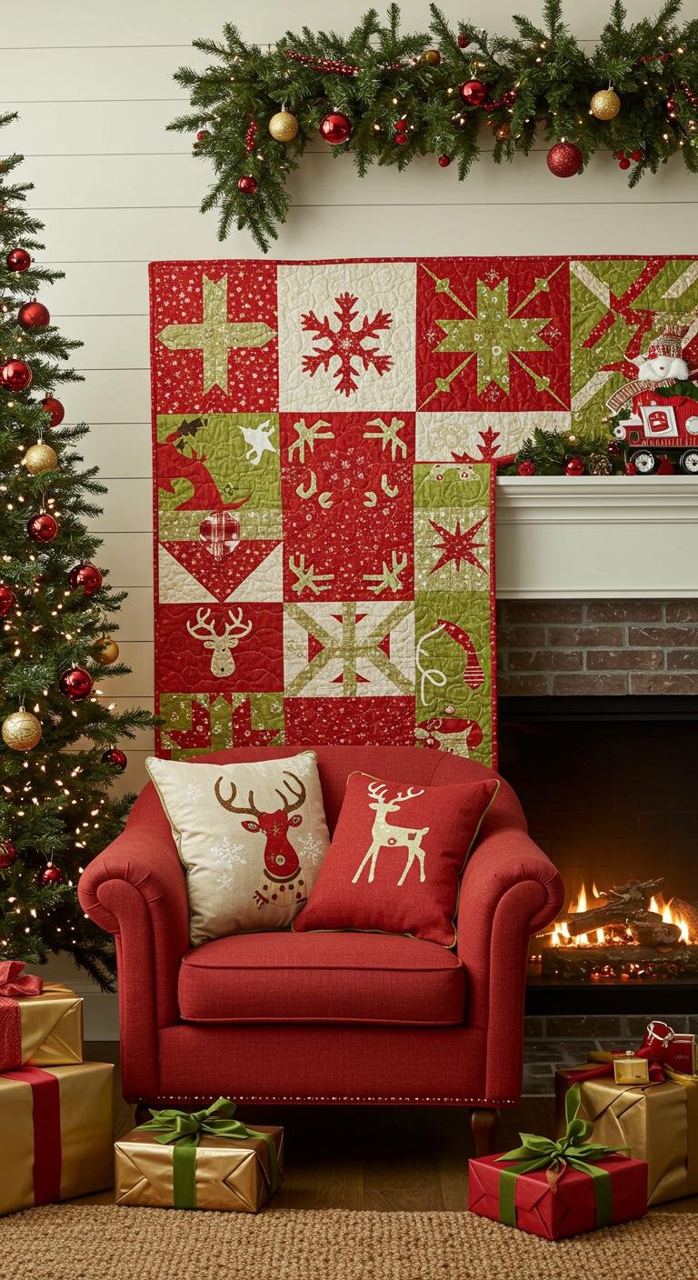 Explore quilt pattern ideas, from classic snowflakes to whimsical reindeer, and let your creativity transform your walls into a canvas of holiday cheer.