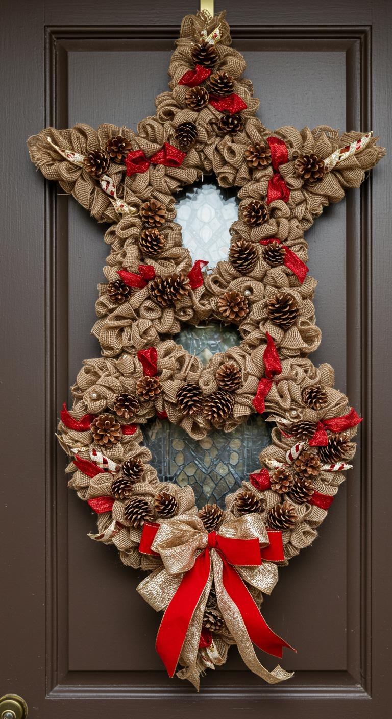 Imagine using unconventional wreath shapes—like stars or hearts—crafted from unique wreath materials such as burlap, pinecones, or even metallic ribbons.