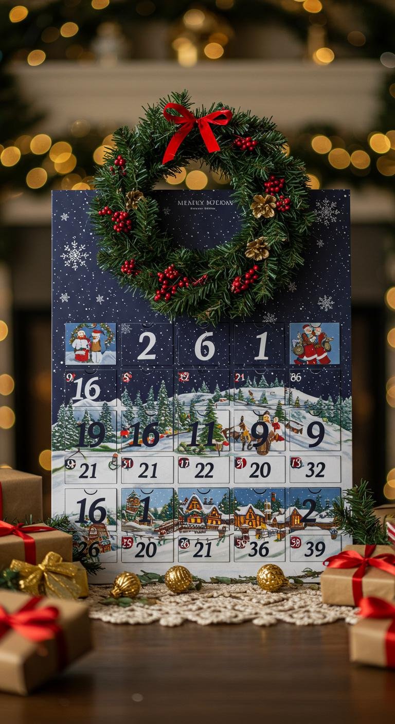 As your festive wreaths draw admiration, consider adding an illustrated Christmas countdown calendar to your holiday decor.