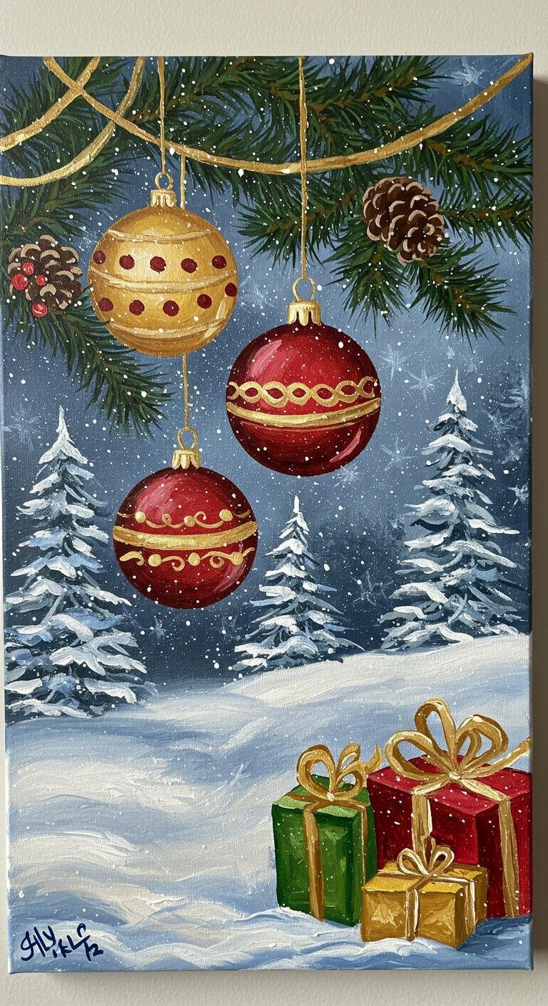 Imagine vibrant festive canvas prints adorned with hand-painted ornaments, capturing the essence of the season.