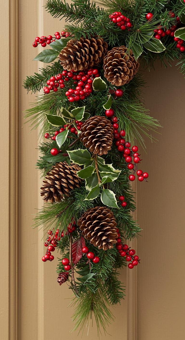 Embrace the rustic charm of the holidays with a stunning pinecone and berry swag that effortlessly elevates your decor.