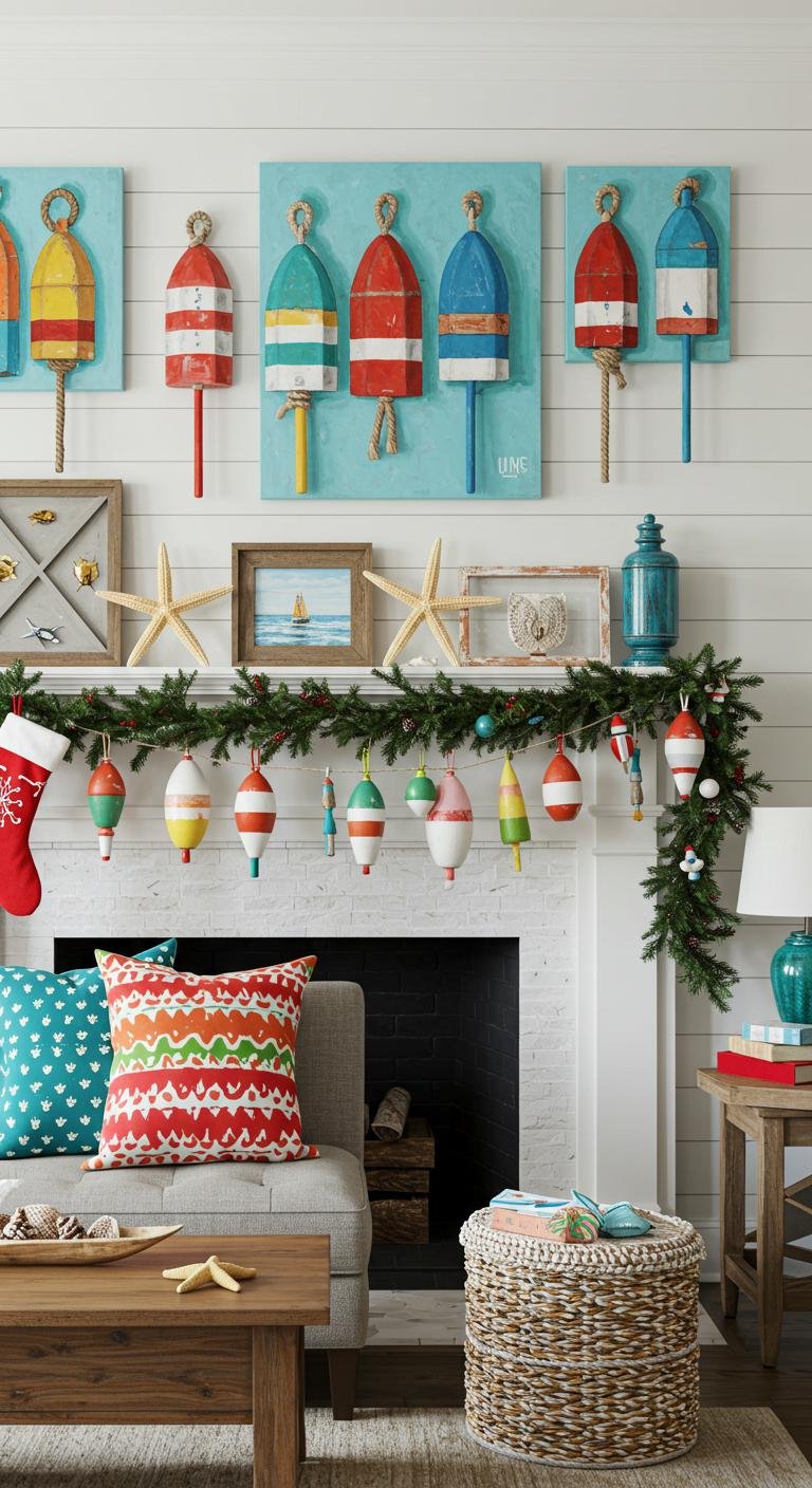 Create a buoy garland to drape across your mantel, effortlessly blending coastal charm with festive flair.