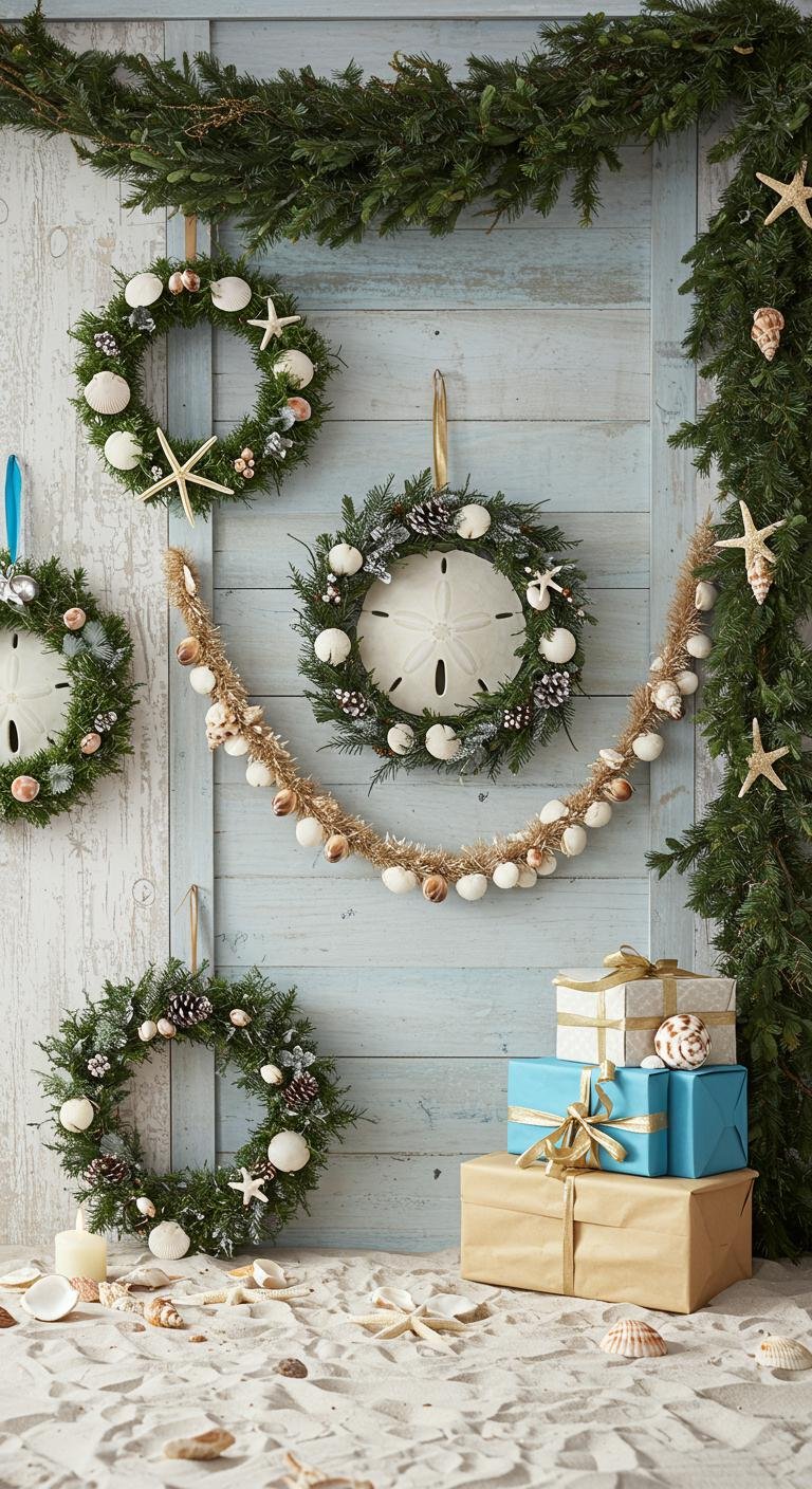 Imagine hanging vibrant stockings featuring starfish patterns, whimsically inviting festive sea creatures into your home.