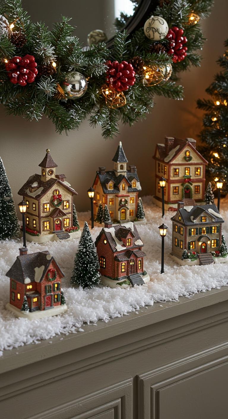 Miniature holiday villages are seriously the cutest way to tell a Christmas story in your home. Set them up on mantels or tables and fill the scene with tiny houses, trees, and figurines. Adding battery-operated lights creates that magical little glow that draws everyone in. Personalize it by slipping in names or handmade pieces from around the house. These villages become little conversation starters and a sweet nod to nostalgia all at once.