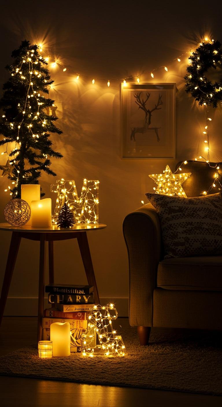 Twinkling fairy lights are basically holiday magic in a nutshell. Wrap them around your tree, toss them over your mantel, or drape them inside jars to add that soft glow everywhere. Battery-operated ones are easy peasy and safe, plus you can really get creative with how you use them indoors and out. Pair them with greenery or rustic decor, and suddenly every spot in your home feels a little more festive and dreamy.