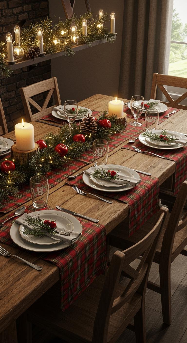 Plaid is like the unofficial fabric of cozy holiday vibes. Whether it’s buffalo check or classic tartan, adding plaid table linens gives your dining area that rustic, lived-in look. I’m a big fan of layering a plaid runner over a burlap tablecloth—it’s such a great combo. Pair them with wooden plates or simple white dishes, and suddenly your holiday dinners have that effortless country charm. Don’t forget those tiny festive extras—pine sprigs or some gently flickering candles truly bring it all together.