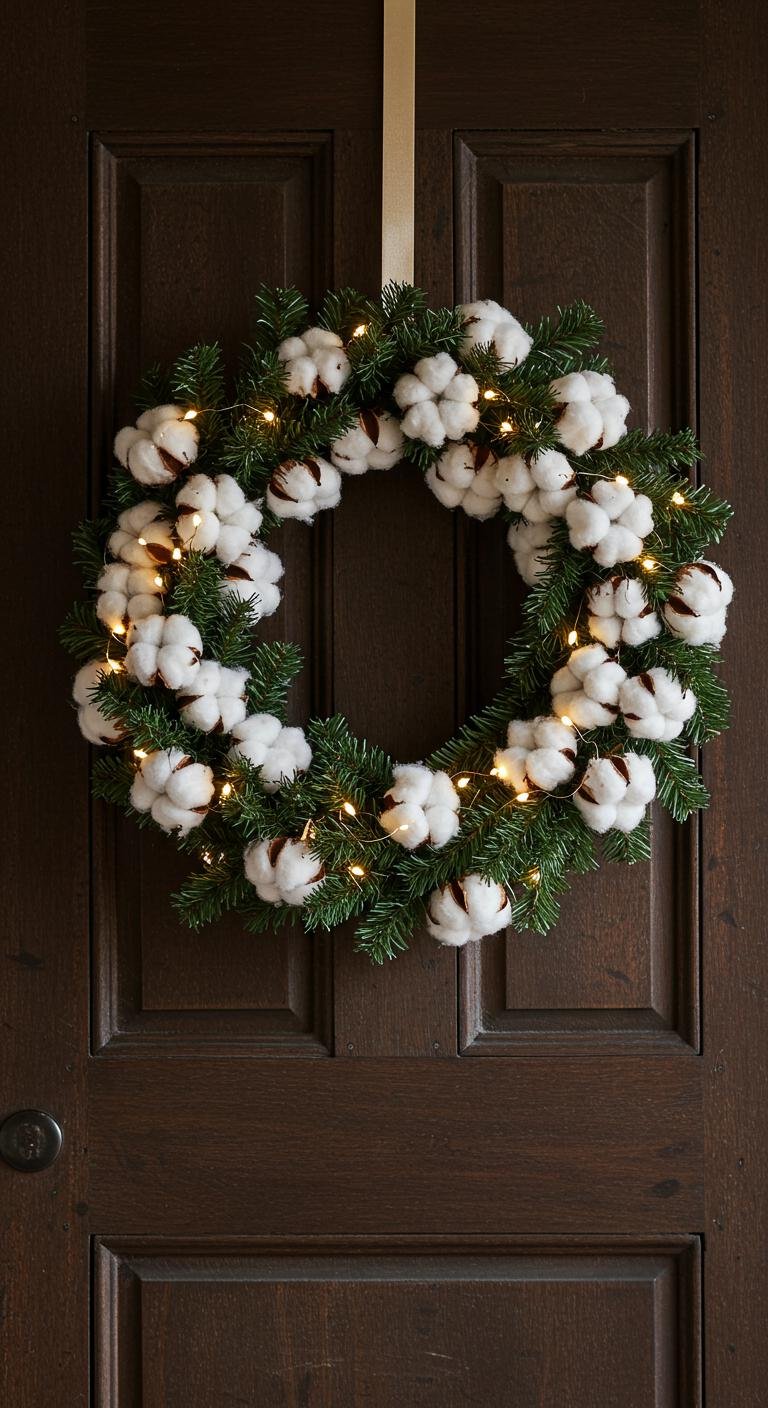 Cotton wreaths bring this soft, down-home vibe that’s just so inviting. They’re really easy to make yourself: start with a foam or grapevine base, then glue on cotton bolls for that fluffy, cloud-like look. Throw in some pinecones or red berries to add color, and you’ve got a front door or mantel decoration that’s simple but stunning. Tie on a festive ribbon for the finishing touch, and maybe turn the making of it into a cozy get-together with family or friends. Decorations and memories? Win-win.