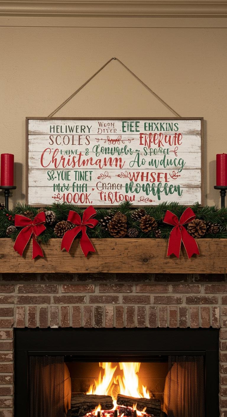 Wooden signs instantly add character and that handmade charm to your holiday space. Picture signs with cute sayings like “Merry Christmas” or “Let It Snow” greeting your guests. The best part? You can make these yourself using reclaimed wood! Just sand it down, paint a festive message (stencils help if you’re not feeling too artsy), and hang it wherever you’d like—above the mantel or by the front door. It’s such a simple DIY that’s personal and budget-friendly, making your home feel genuinely festive.