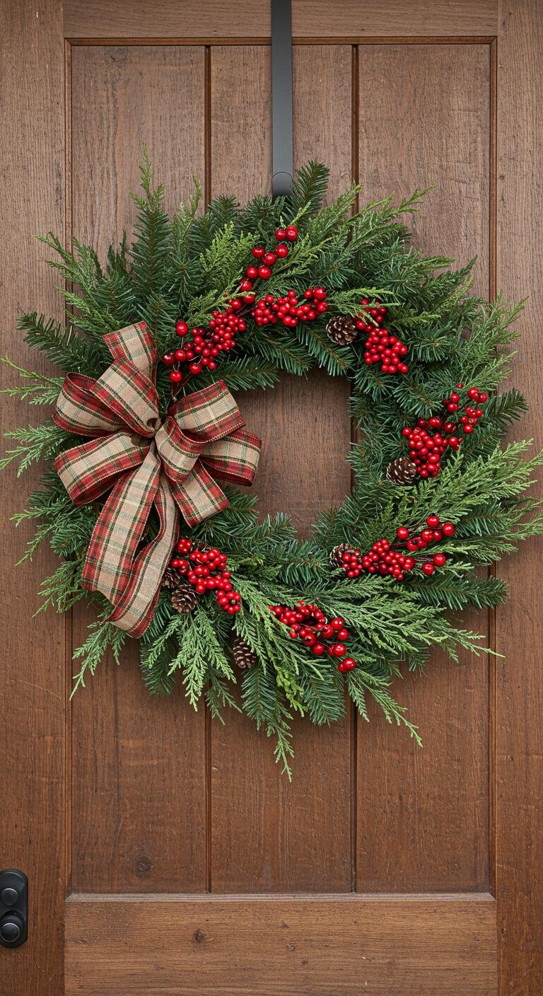 Nothing sets the tone for holiday cheer quite like a classic evergreen wreath. Whether you grab one ready-made or craft your own, using fresh pine or cedar branches layered thick and lush gives your front door or any room that signature Christmas glow. Adding berries brings a lively pop of color, and if you’re on a thrifty vibe, gather some greens from your own yard or nearby woods. Finish it off with a burlap wrap or a plaid ribbon for that sweet, rustic country feel.
