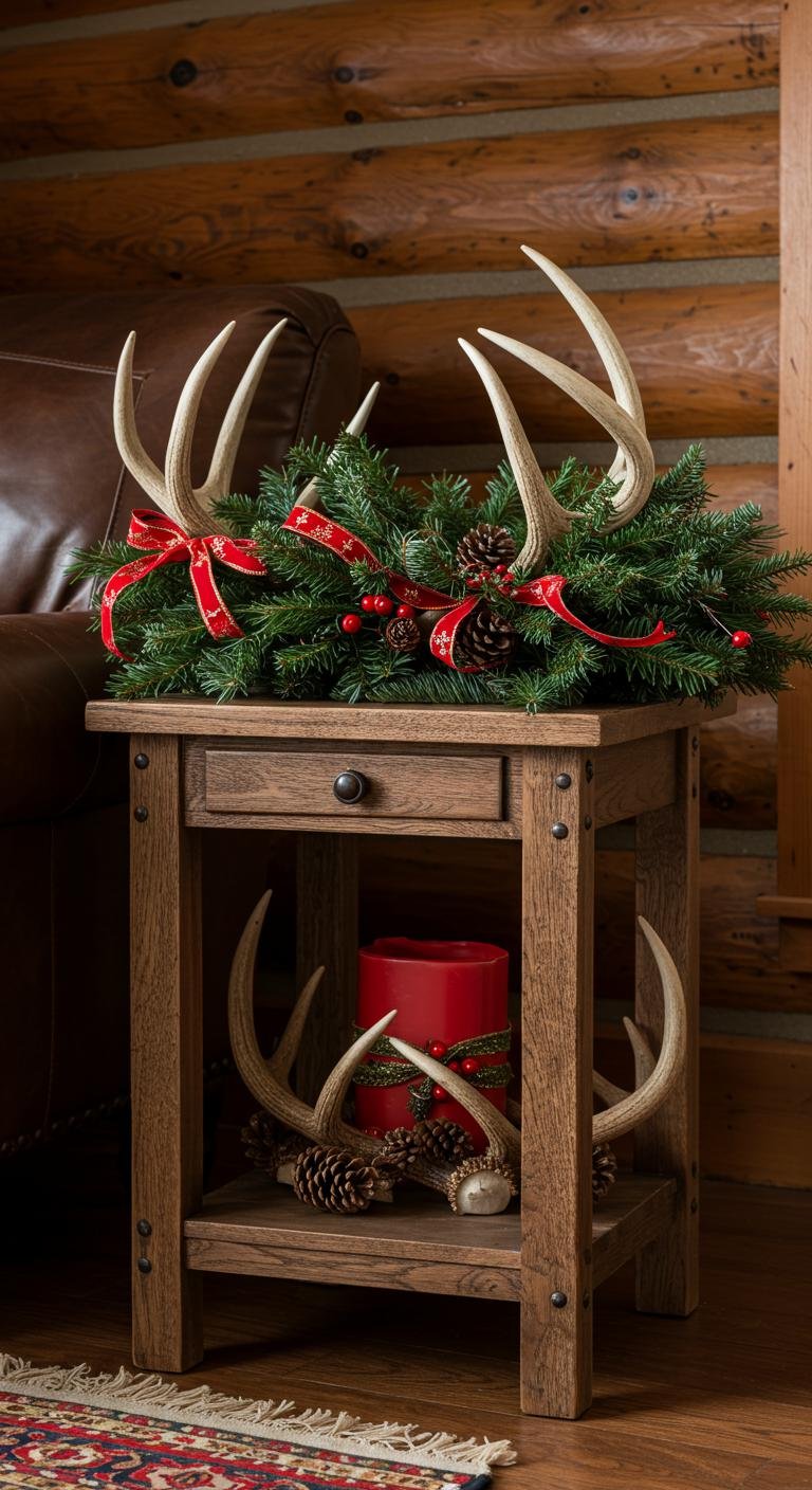 If you love that outdoorsy, rustic vibe, antler decor is an easy way to bring it inside. Whether you use real or faux antlers, arranging them on tables or mantels alongside greens adds natural texture and interest. Wrapping them up with ribbons and sprigs of evergreen amps up the holiday factor. It’s a subtle but stunning nod to cabin life that fits perfectly with country Christmas themes.