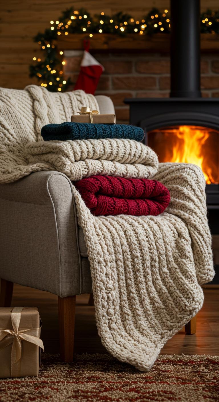 There’s no better way to invite warmth than chunky knitted throws and cozy blankets. Pick those with plaid patterns or thick textures for a sweet rustic feel. Whether you knit your own or find wallet-friendly ones at home stores, draping them over sofas or chairs instantly makes your space feel welcoming and snug—perfect for those chilled winter evenings or a cozy holiday party.
