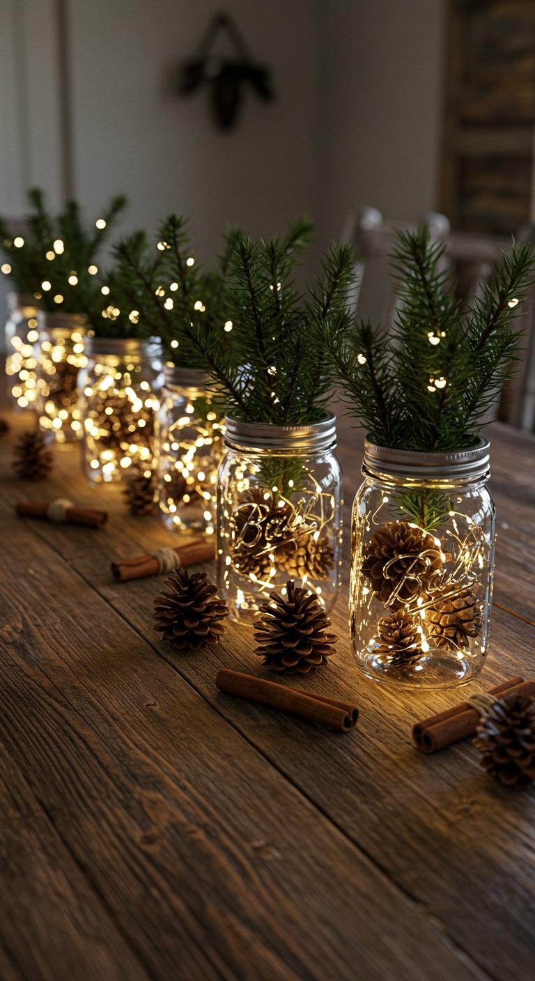 Mason jars are the gift that keeps on giving when it comes to holiday decorating! Clean some out and fill them with pinecones, sprigs of greenery, or even twinkle fairy lights for a subtle magical vibe. Layer in some berries or a sprinkle of glitter to dial up the festive sparkle. These jars work perfectly as charming centerpieces on the table or as sweet accents on shelves, and the best part is they’re super inexpensive and customizable to your style.