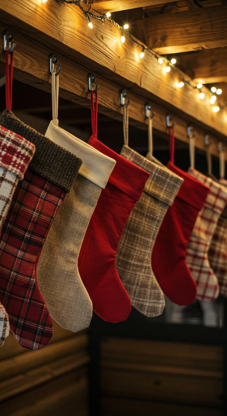 Stockings are a must, and going rustic with fabrics like burlap or knit adds all the charm. Plus, personalizing them is a breeze—think initials, cute holiday motifs, or little touch-ups with fabric paint or iron-ons. You can DIY them if you’re feeling crafty or snag some from craft fairs or thrift shops. Hanging these on your mantel or walls gives your home that nostalgic, welcoming holiday vibe, just waiting to be filled with surprises.