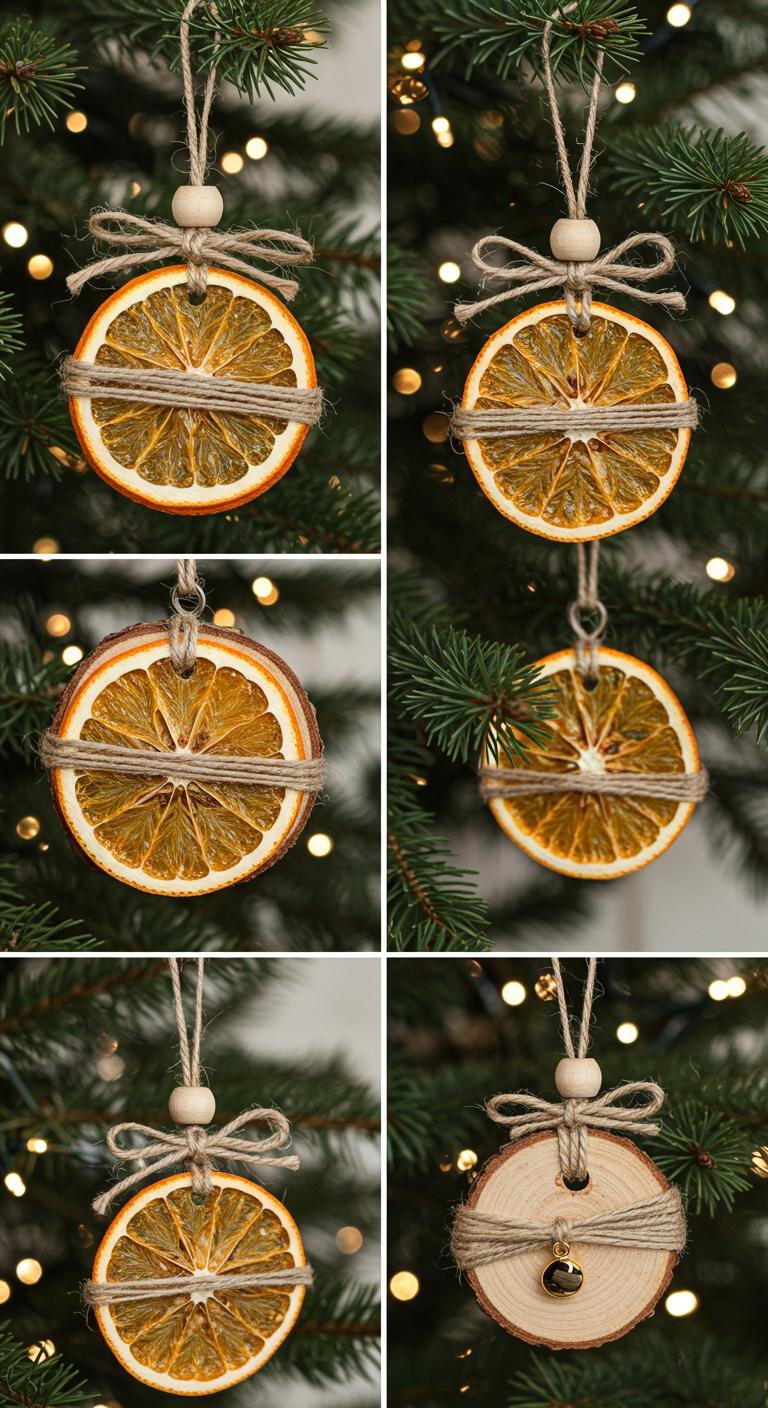 Dried orange ornaments are a beautiful, simple craft that also makes your home smell amazing. Slice oranges thinly, dry them in the oven or a dehydrator, and then string together with twine for rustic garlands or hang them solo on the tree. This little project is easy, budget-friendly, and brings a natural pop of color and scent to your decorations.