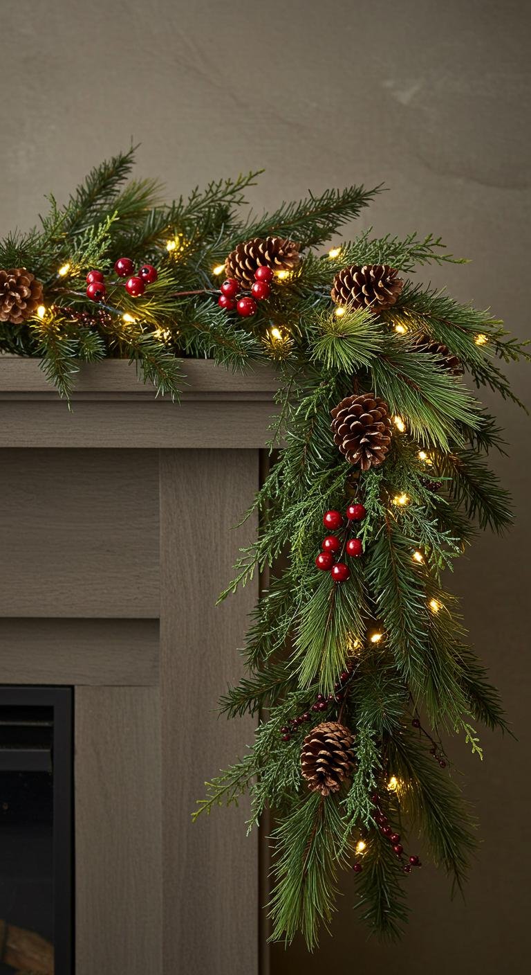 There’s nothing quite like natural garlands to lift the festive spirit. Mix fresh or faux evergreen branches with bursts of berries, and drape them over mantels, doorways, or dining tables. You can find these ready-made or make your own using pine, cedar, or boxwood from garden centers. Wrapping twine or plaid ribbons around them? Instant rustic charm that makes your space feel all the more cozy.
