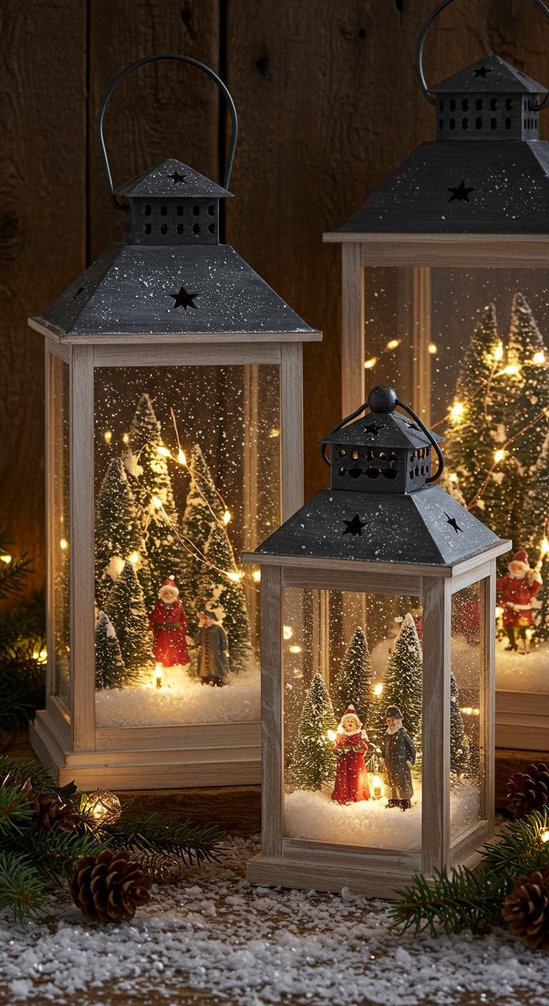 Old lanterns aren’t just for light — fill them with tiny holiday scenes! Think miniature trees, little figurines, and a sprinkle of faux snow. Add some mini lights for extra sparkle, then place these on tables, mantels, or window sills. This is a fantastic craft to do with kids; they’ll love designing their own tiny worlds and you’ll have keepsakes for years to come.