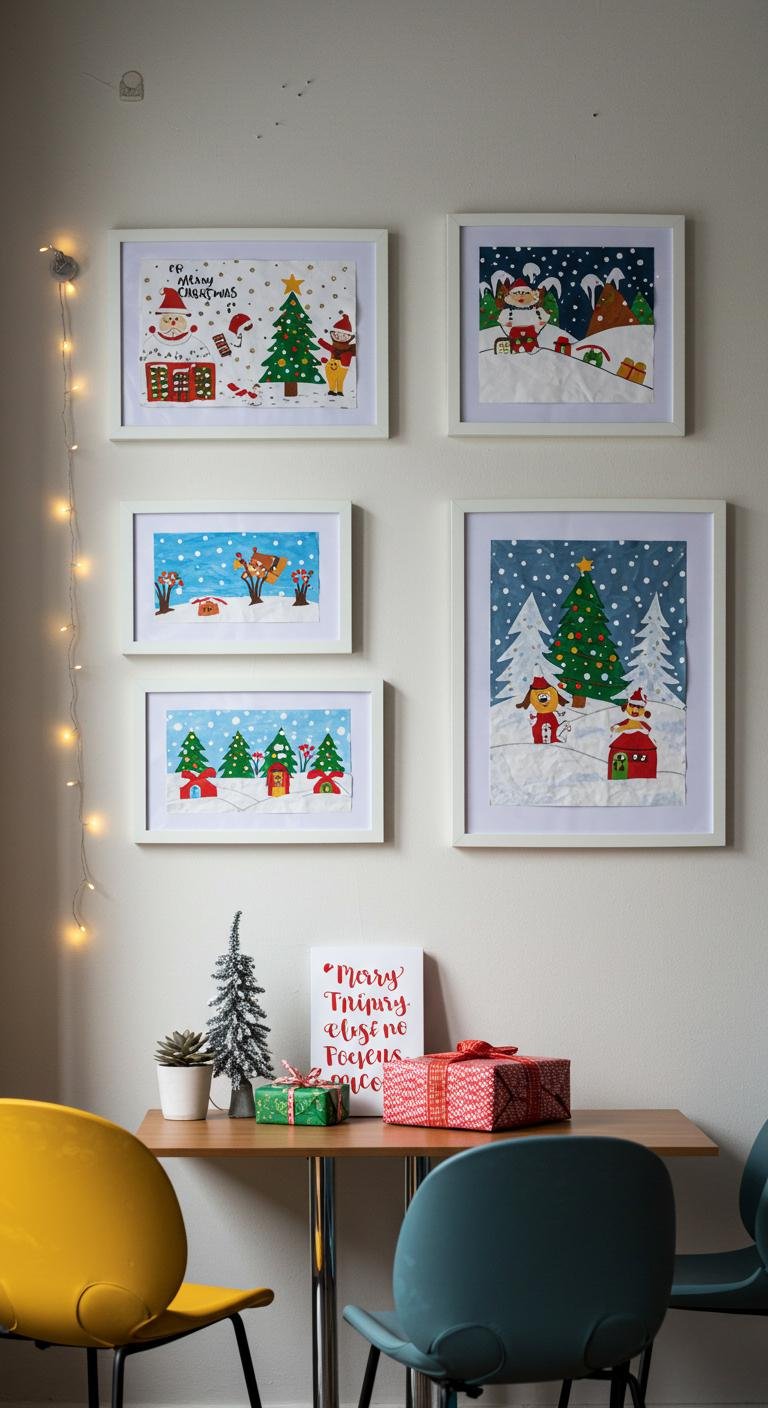 Why not turn your walls into a showcase of holiday spirit? Use budget-friendly canvases and paints to whip up some seasonal art—think simple winter landscapes or hand-lettered festive quotes. If you have kids, their artwork makes the perfect heartfelt decoration. Frame these pieces and hang them up to fill your home with personal flair. It’s like creating your own little Christmas gallery without spending a fortune.