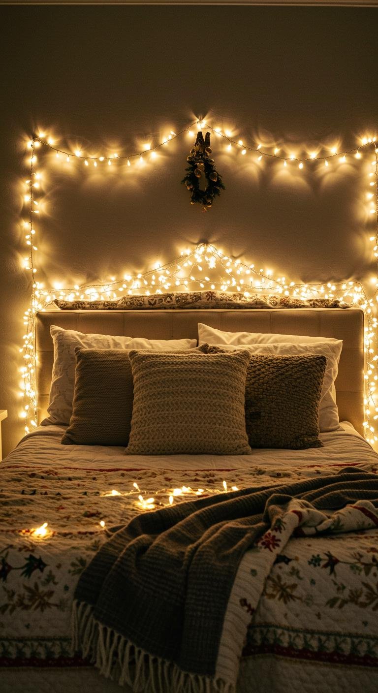 String lights are like instant holiday magic. Loop them around your windows, drape them along the mantel, or, for something artsy, wrap them around a big branch hung on your wall. When plugged in, they fill the space with a warm, cozy glow that’s hard to beat. If you don’t want the cord hassle, pick up some battery-operated lights—perfect to pop anywhere and everywhere. Bonus: you can find affordable options at discount or secondhand stores, making this a budget win as well.