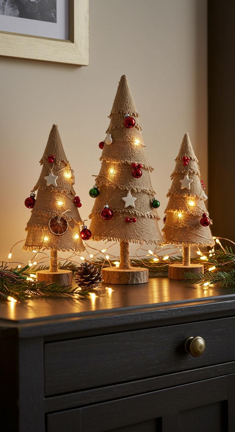 Mini Christmas trees are absolute gems when you’re tight on space. Instead of squeezing in one huge tree, try scattering a few small ones around different rooms. Pop them on side tables, countertops, or shelves to brighten up the corners. Grouping several makes for a fun visual display, and decorating each with its own style tells a sweet little story or theme. Plus, DIY ornaments made from natural bits like pinecones or dried oranges keep things light and personal. These tiny trees won’t break your budget or your storage space, making them perfect year after year.