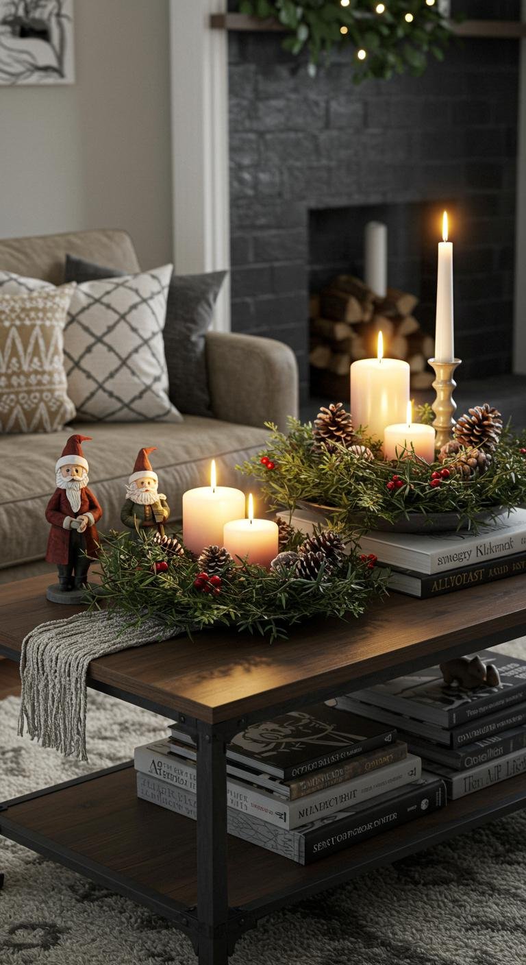 Creating layered vignettes—little clusters of candles, frames, seasonal greens, and trinkets—is a fantastic way to add holiday charm without using up tons of space. Mix different heights and shapes on surfaces like shelves, coffee tables, or mantels to keep things interesting and cozy. Hunt for thrift store finds or repurpose items you already have for an affordable yet chic display. These small yet artful groupings pack a big festive punch.